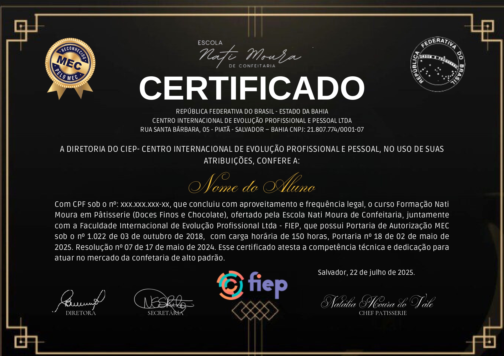 Tenho mais de 2M de doces produzidos e mais de 1.000 eventos . Na Escola Nati Moura, possuo mais de 5 mil alunos em 27 países...